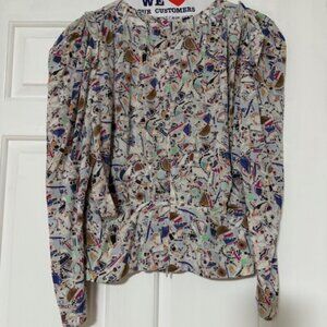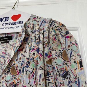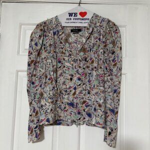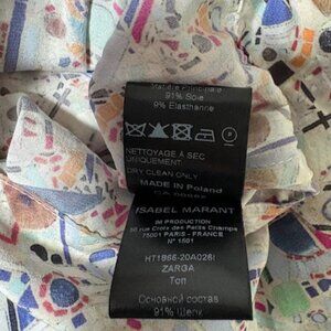 So elegant! Don't wear this so selling! Isabel Marant Zarga stretch silk blouse with all-over print, V-neck, long sleeves and puff shoulder straps. Concealed zip closure at the back. Excellent condition and no flaws. Pictures show the zipper, tag, sizing, care instructions (dry clean only!), extra button, button cuffs, and the ruffle/ruching on the shoulders. 91% silk, 9% elastane. Size EU 42 (10-12 US).