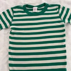 Hanna Andersson sz 14 (160) Green & Cream Striped Short-Sleeve Pajama Set