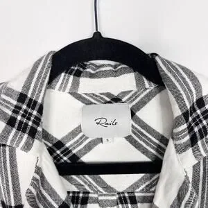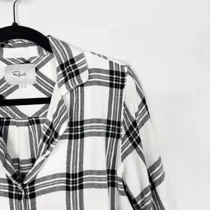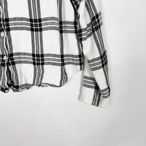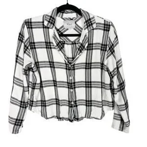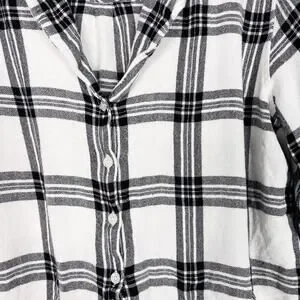 Rails Small White Black Long Sleeve Short Set Onyx Plaid Top Button Down Flannel