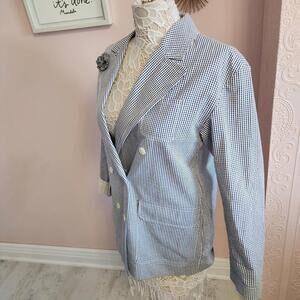 Alex Mill Blue & White 100% Cotton Gingham Double Breasted Blazer Size S