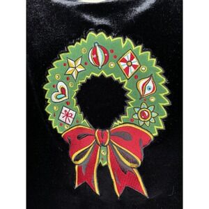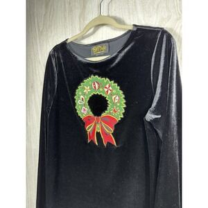 Bob Mackie Black Velvet Christmas Sweater L Wreath Bow Holiday Festive