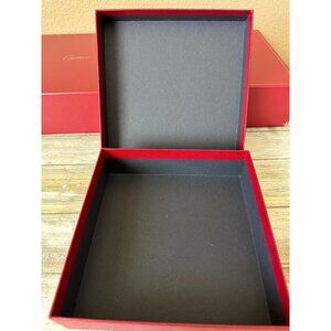 Set of three genuine Cartier red presentation boxes featuring the iconic gold Cartier logo. These rigid luxury boxes were originally used for Cartier jewelry or watches.