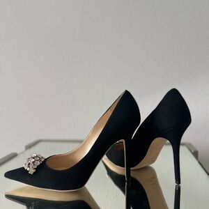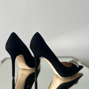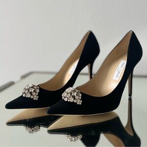 Jimmy Choo black suede pumps with crystal embellished brooch 40 $895
