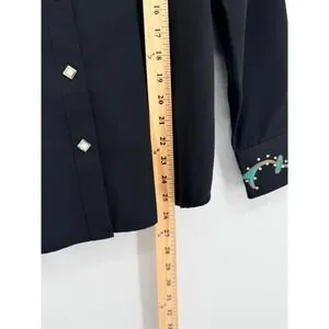Panhandle Slim Womens L Western Shirt Black Embroidered Rhinestone Snap