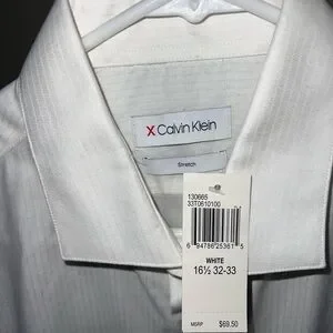 Calvin Klein Men’s Dress Shirt Bundle 3 Pack 16.5 34/35 L Stretch White Black