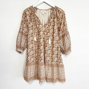 BOGO! Cleobella Rosy Block Print Cotton Mini Dress Tan Size Small