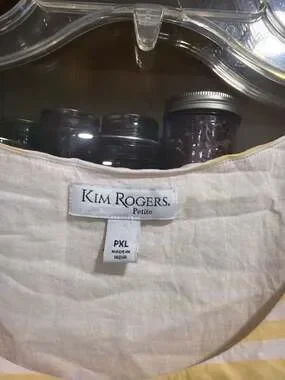Kim Rogers Petite Sleeveless Tiered Cotton Dress, Yellow and White Striped, Size PXL. This charming summer dress features a breezy 100% cotton fabric with vertical yellow and white stripes. It has a sleeveless design, a scoop neckline, and a tiered skirt that adds a playful silhouette.