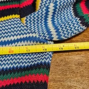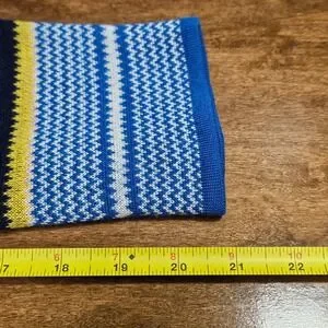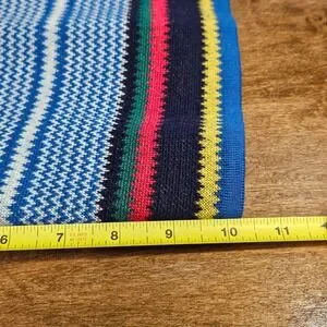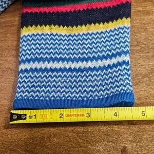 Pattern: Multi-color horizontal primary stripes (Navy/Blue base).