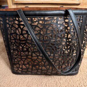 GUC~ 2/1 Laser Cut Out Black Shopper & Leopard Cross Body Bag-Purse-Tote (Bin 9)