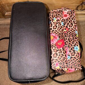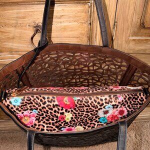 2 in 1: Laser Cut Out Black Leather Shopper and Leopard Cross Body Bag-Purse-Tote.