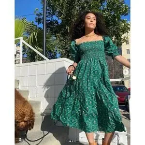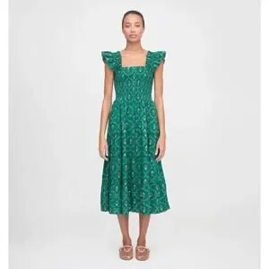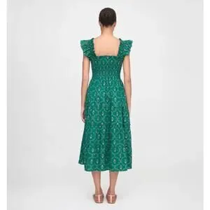 HILL HOUSE The Ellie Nap Dress Emerald Trellis Green Floral Sz XS $178 {3M3}