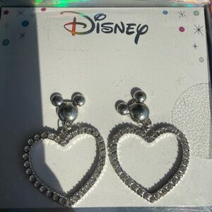 Disney Silver Mickey Dangle Heart Earrings