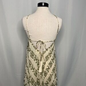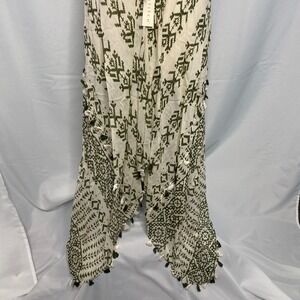 Lovestitch Olive Green Tribal Print Tassel Maxi Dress Handkerchief Hem S/M NEW