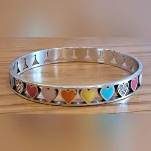 RARE Vintage Brighton Rainbow Heart Swarovski Crystal & Silver Bracelet Jewelry