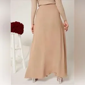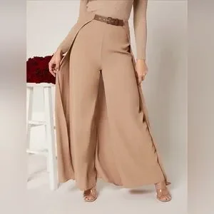 SHEIN High Waist Wide Leg Belted Pants with Skirt Overlay - Tan/Khaki - Size 6