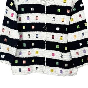 VTG Design Options Knit Black & White Stripes & Patchwork Detail Cardigan S