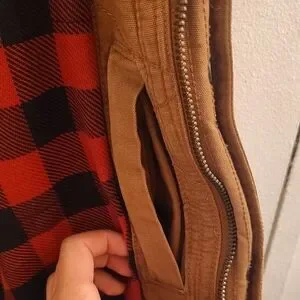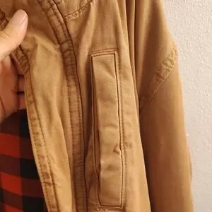 American Eagle Outfitters Tan Jacket with Red Buffalo Plaid Lining