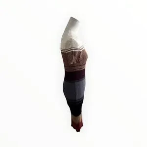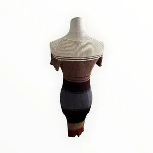 STAUD Colleen Colorblock Rib Sweater Dress Sahara Stripe Striped Midi Bodycon M
