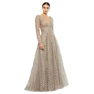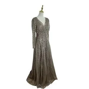 Mac Duggal 20189 Embellished Illusion Long Sleeve Wrap Over Gown Size 6 $598