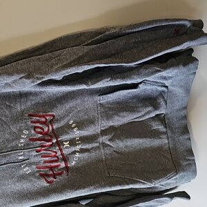Hurley Medium Gray Pullover Hoodie with Red Script Logo