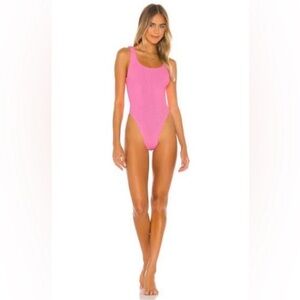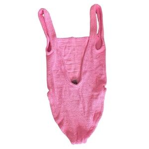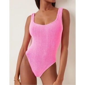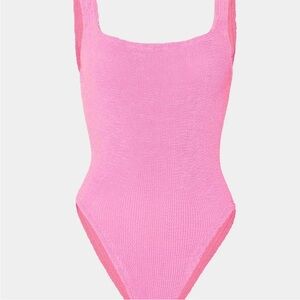 Hunza G Square Neck One Piece Swimsuit Bikini Bubblegum Pink Monokini Crinkle