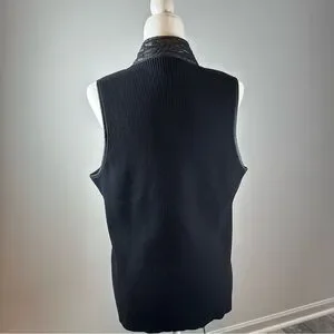 Chico’s Collection Black Quilted Faux Leather Vest Size 2 Sleek & Chic