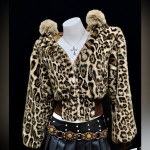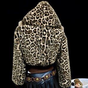 Stay warm and stylish with this luxurious leopard print faux fur jacket. Perfect for adding a touch of glamour to any outfit.