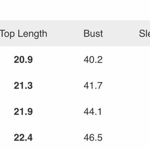 Medium- length 21.3, bust 41.7, sleeved 22.3 inches