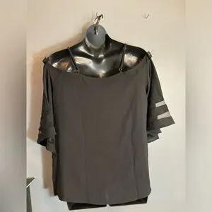 Black cold shoulder mesh sleeve blouse