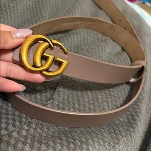 Taupe faux Leather Belt - Gold buckle