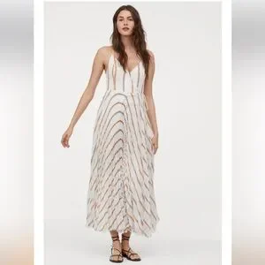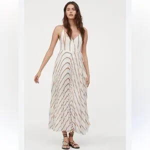 H&M Ivory Maxi Dress with Tan Stripes size 6