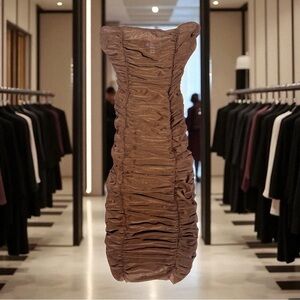 Urban Outfitters | Brown Ruched Strapless Dress for Women Size XS Extra Small