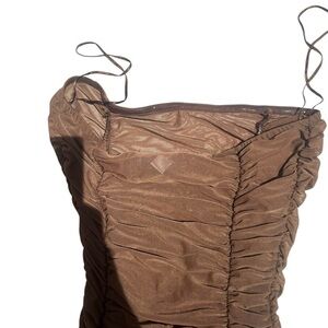 Elegant stretchy brown ruched dress from Urban Outfitters!