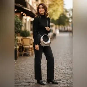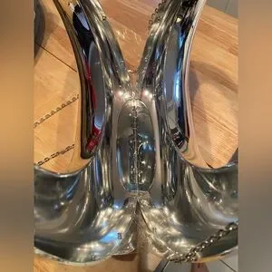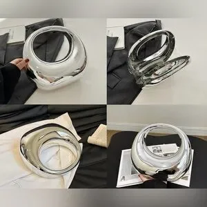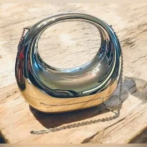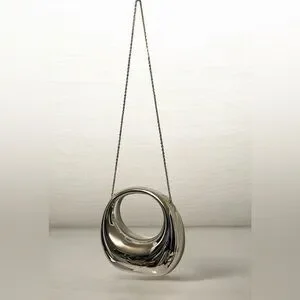 Unique silver metallic handbag with a sculptural design. Features a sleek chain strap. I had so many lovely compliments. 😍