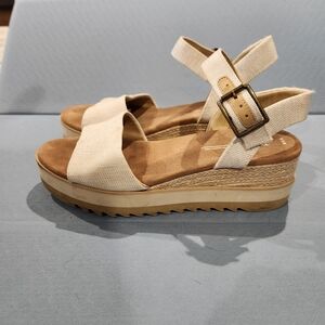 Elevate your summer style with these chic and versatile TOMS Diana platform wedges. Featuring a neutral natural linen upper and a comfortable espadrille-inspired rope wrap, these sandals are the perfect blend of casual comfort and elevated height.