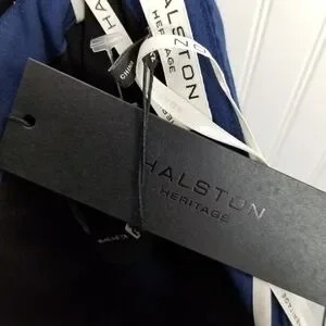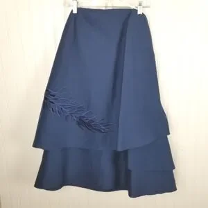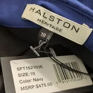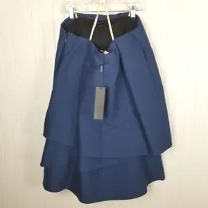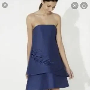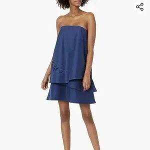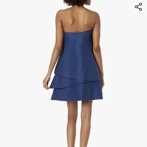 Halston Heritage Women's 10 Blue Strapless Tiered Embroidery Detail Dress Silk