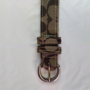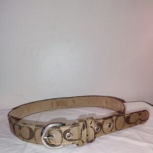 Coach Beige Signature Canvas Belt with Silver Buckle