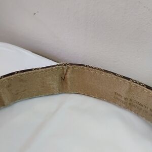 Classic beige signature-print women’s belt with silver-tone buckle. Stylish complement to casual and dress looks. Adjustable fit with reinforced stitching for daily wear. Size is medium; 37 inches