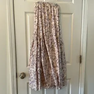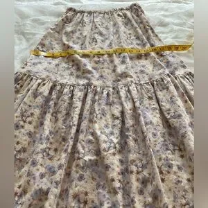 H&M Lin Melange Womens XS Multi-Color Floral Ballerina Length Skirt. Elastic Waist Linen Blend Light Pleats Flaring Skirt