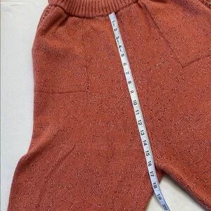 These cozy knit pants feature a warm rust color, perfect for everyday wear. Soft and comfortable. Cropped. Elastic waist. Pockets. Boho beach vibes. So soft. So cute