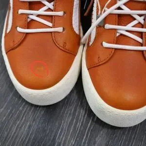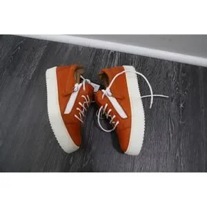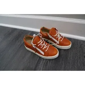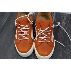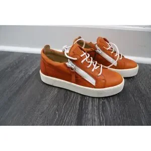 Elevate your footwear game with these stunning Giuseppe Zanotti orange leather sneakers, designed to capture attention and offer unparalleled comfort. The rich, warm hue of the genuine leather instantly adds a pop of vibrant color to any ensemble, while the iconic side zippers provide a unique, edgy aesthetic and effortless wearability. Imagine the confidence you'll feel stepping out in these, knowing their luxurious craftsmanship and distinctive design are turning heads. The crisp white soles offer a clean contrast, grounding the bold color and ensuring versatility. Perfect for a stylish brunch date or adding a statement piece to your casual weekend look.