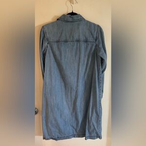 Soft light blue denim tunic from Old Navy. Button-front styling with a relaxed fit. Two front patch pockets for utility. Very cute and comfortable for casual looks. Button cuffs. Size M Hits just above the knee, on a 5’3” lady(for reference)