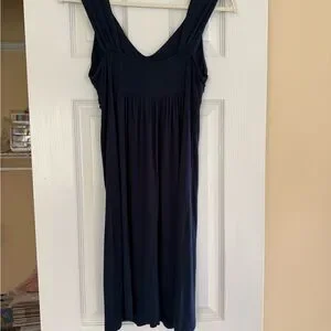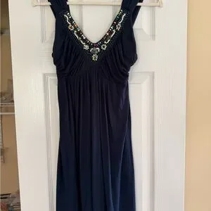 Super soft and flowy navy dress with amazing beaded embellishments along the neckline. Very flattering. Best for a size s/m
