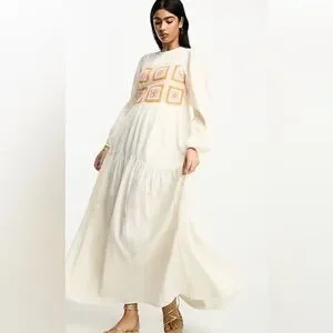 ASOS Design Broderie Crochet Bodice Maxi Bohemian Dress Size 4