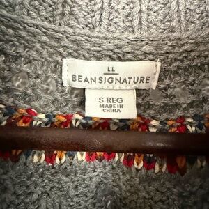 L.L. Bean Signature Gray Fair Isle Cardigan with Red, Navy & Cream Accents