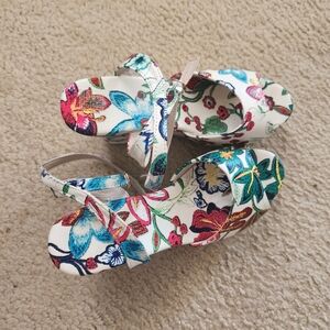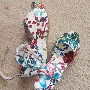 Brighten up your wardrobe with these colorful floral sandals. Perfect for any occasion, these shoes offer both style and comfort.