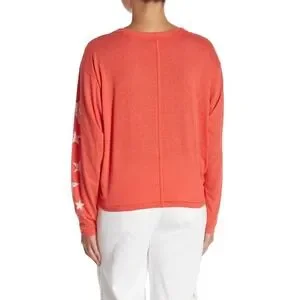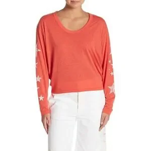 • Key Features: Cropped length, scoop neckline, long sleeves with star graphic detailing, relaxed fit