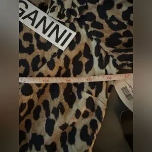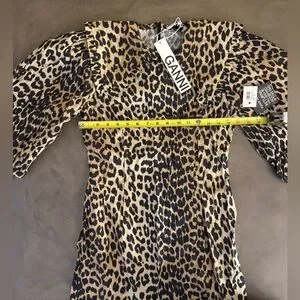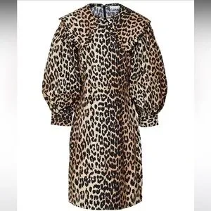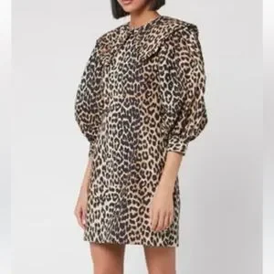 Get a statement look this season with the Ganni cotton poplin mini dress. Crafted in crisp cotton poplin with an all-over leopard print, this bold mini dress is perfect for day to night styling. It features a ruffled bib collar, concealed back zip fastening and puffy elbow-length balloon sleeves.