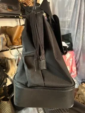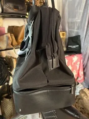 Material: Poly canvas body, vegan leather trim, 100% poly lining, nylon zipper, and zinc alloy hardware.