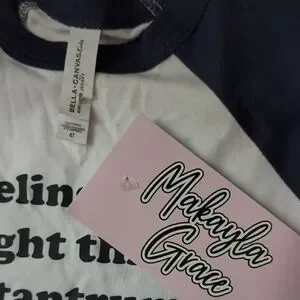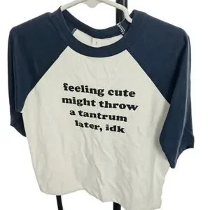 Charming kids tee with fun text. Blue sleeves and white body. Perfect for casual outings.